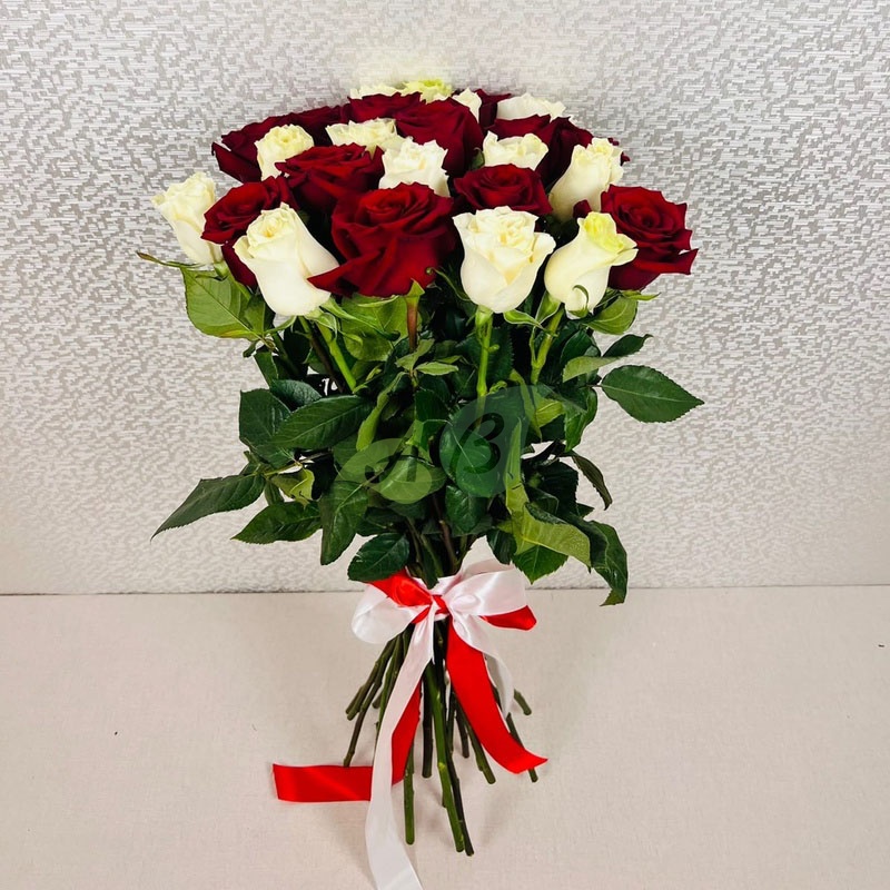 Букет "25 красных и белых роз" Премиум (70 см)